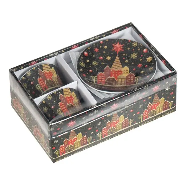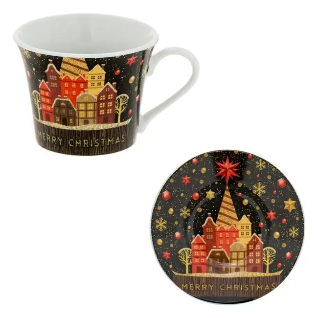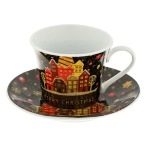 Комплект порцеланови чаши коледни черни къщички – 90ml – 2 бр