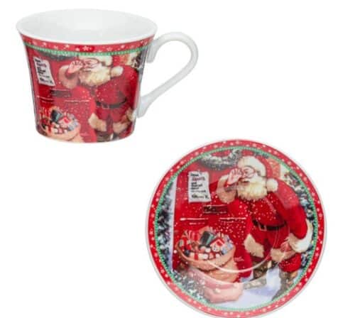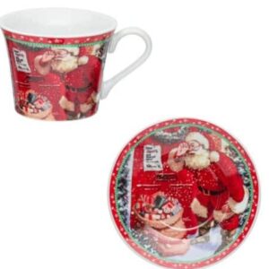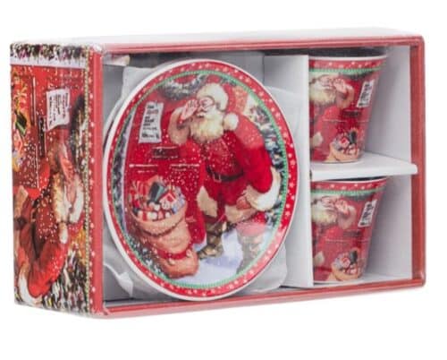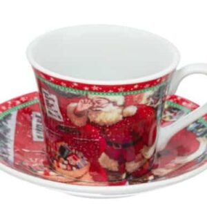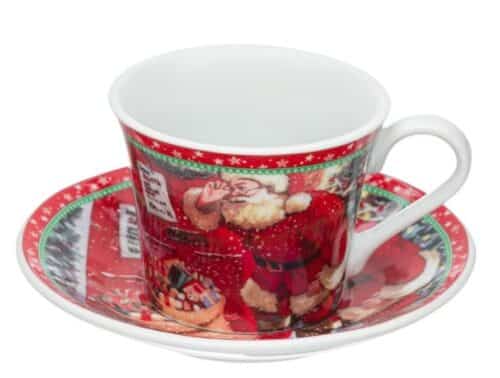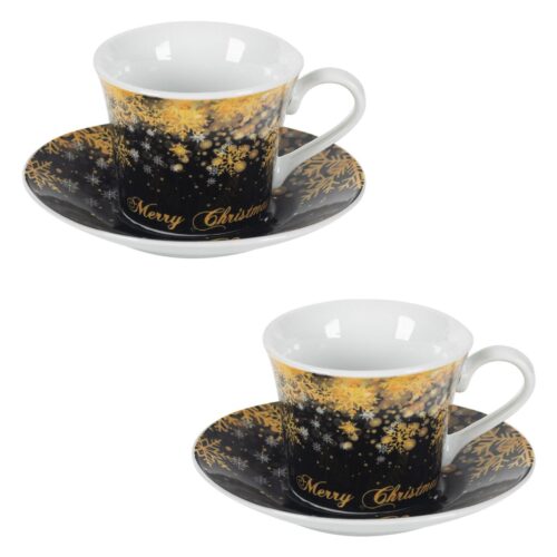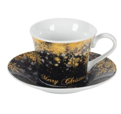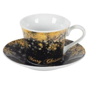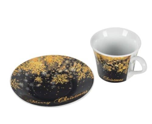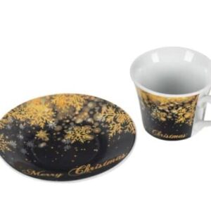 Комплект коледни порцеланови чаши с чинийки 90мл – 2 бр.